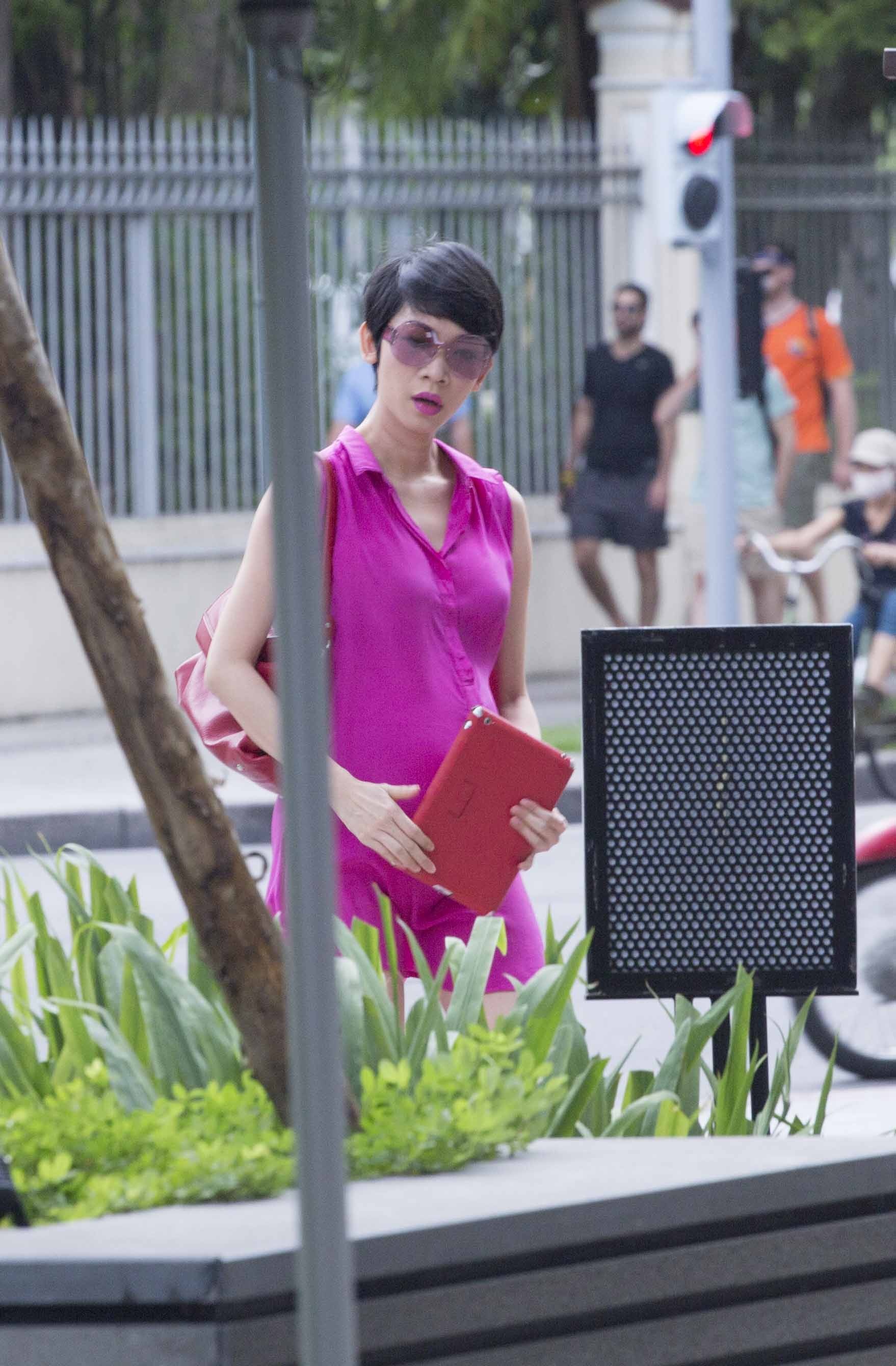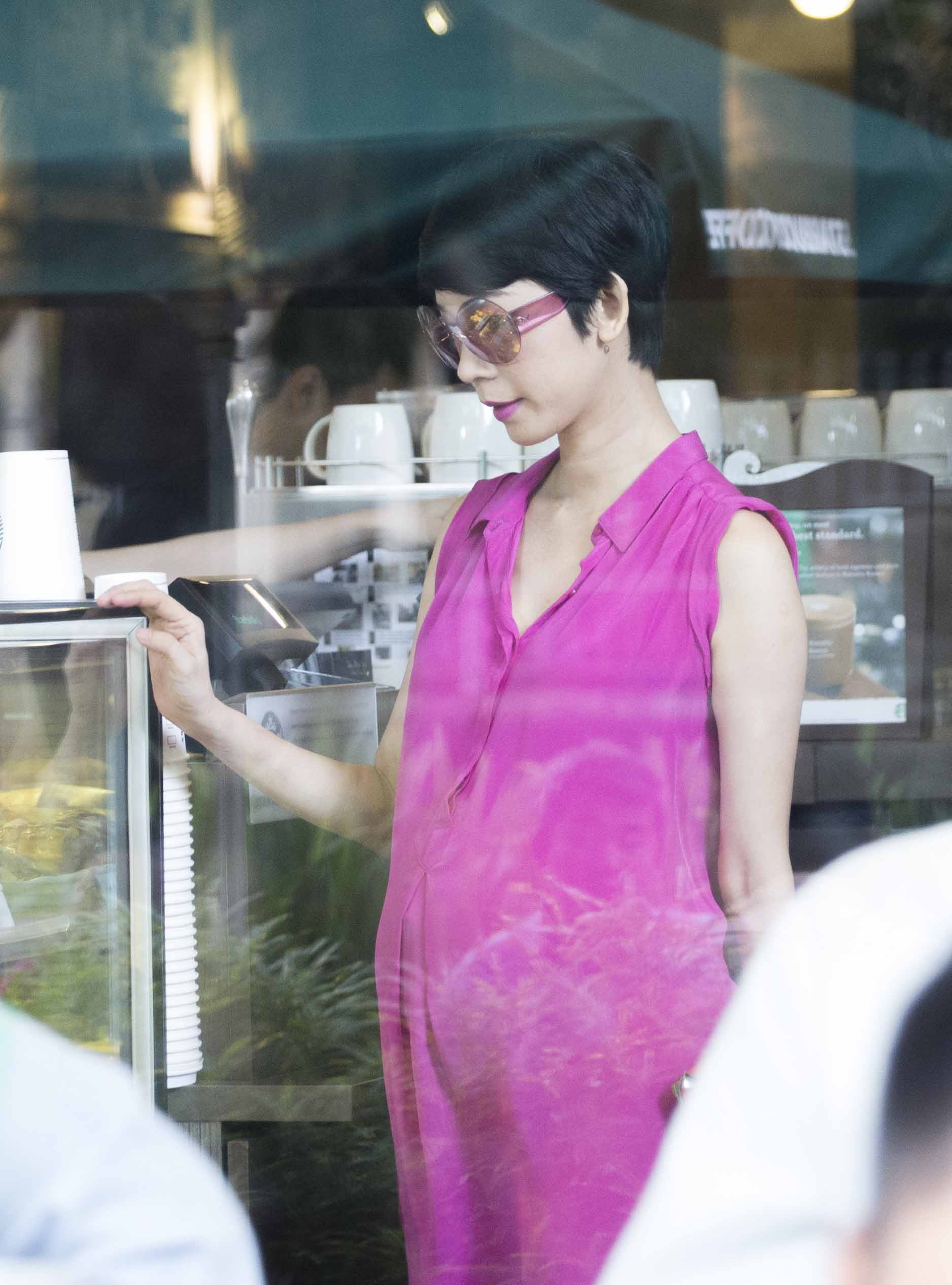 Cuối tuần vừa rồi, Xuân Lan diện chiếc đầm hồng nổi bật và ghé vào một quán cafe ở TP.HCM. Kể từ khi có thai, cô thay đổi khá nhiều thói quen ăn uống, sinh hoạt để đảm bảo sức khỏe cho cả mình lẫn bé con sắp chào đời.