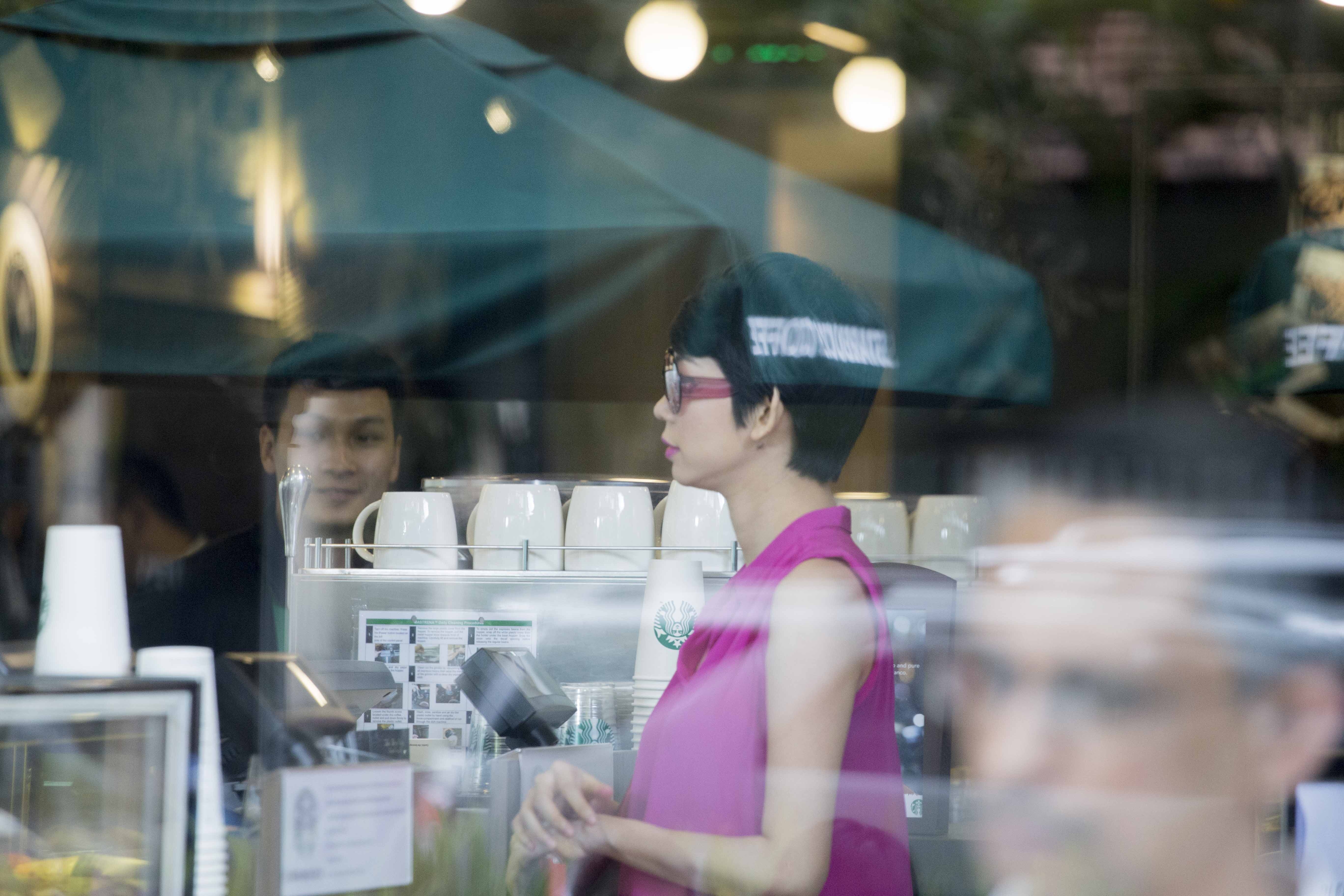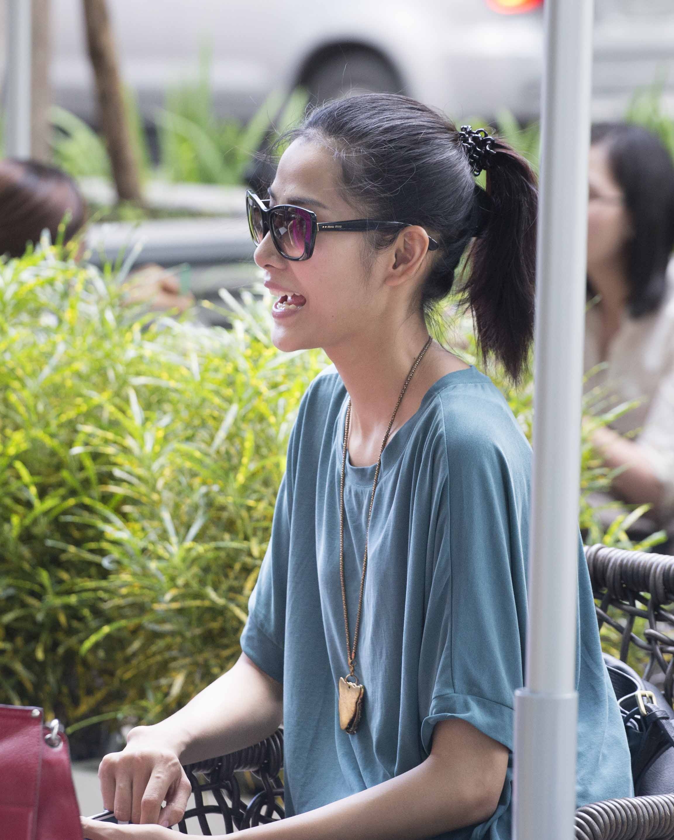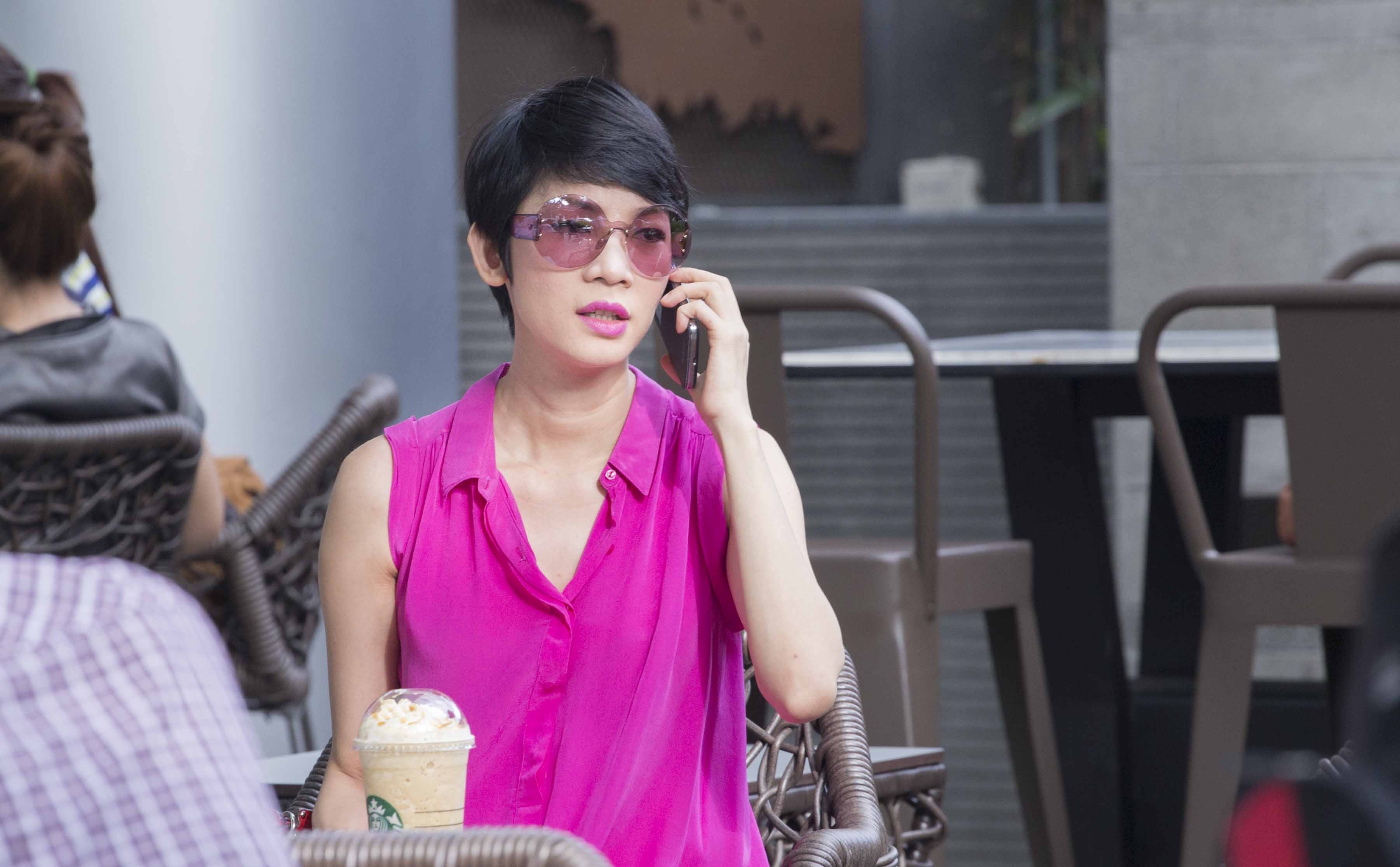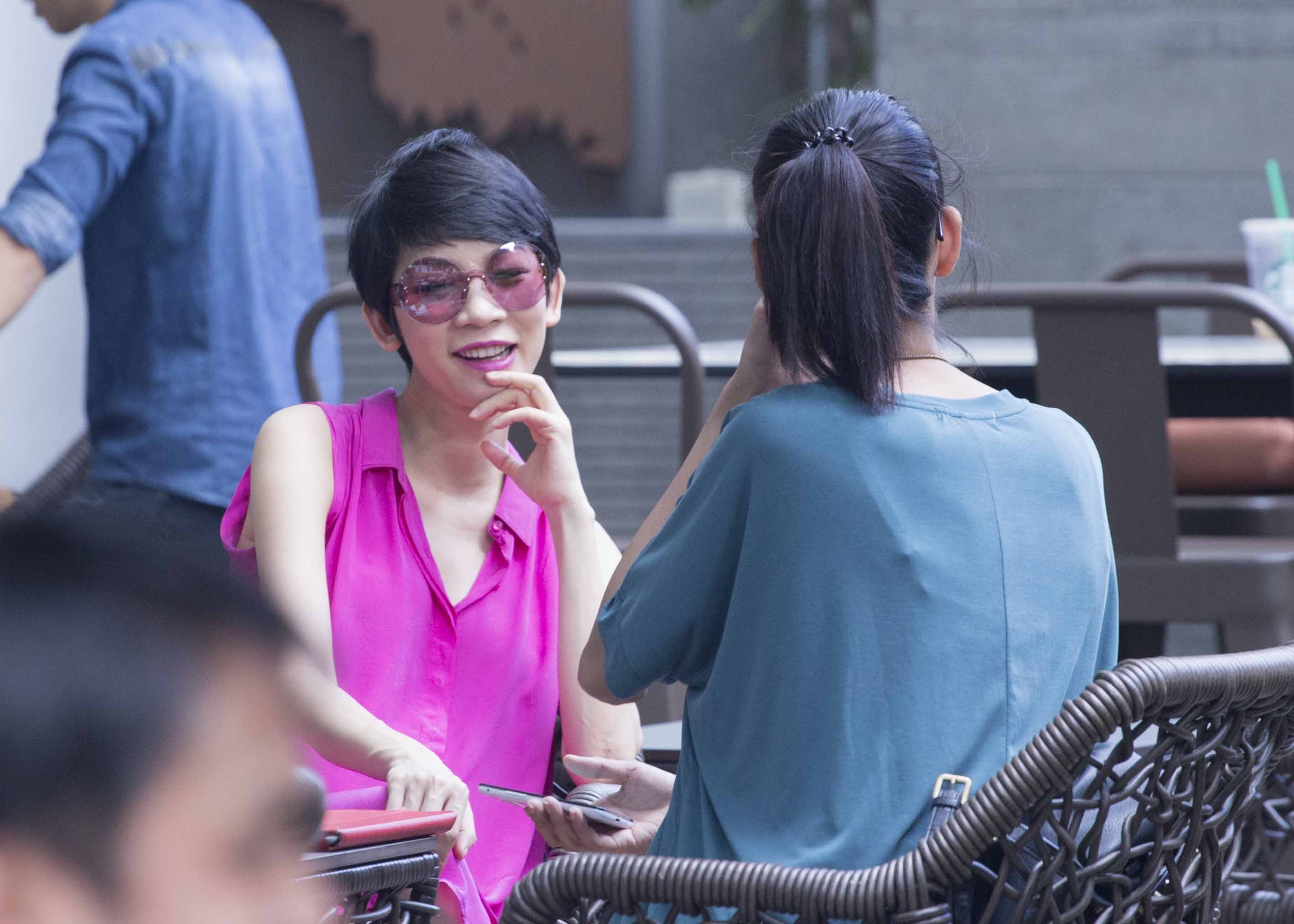 Trong lúc ngồi ở quán cafe, Xuân Lan tranh thủ trả lời điện thoại của bạn bè để sắp xếp lại công việc.