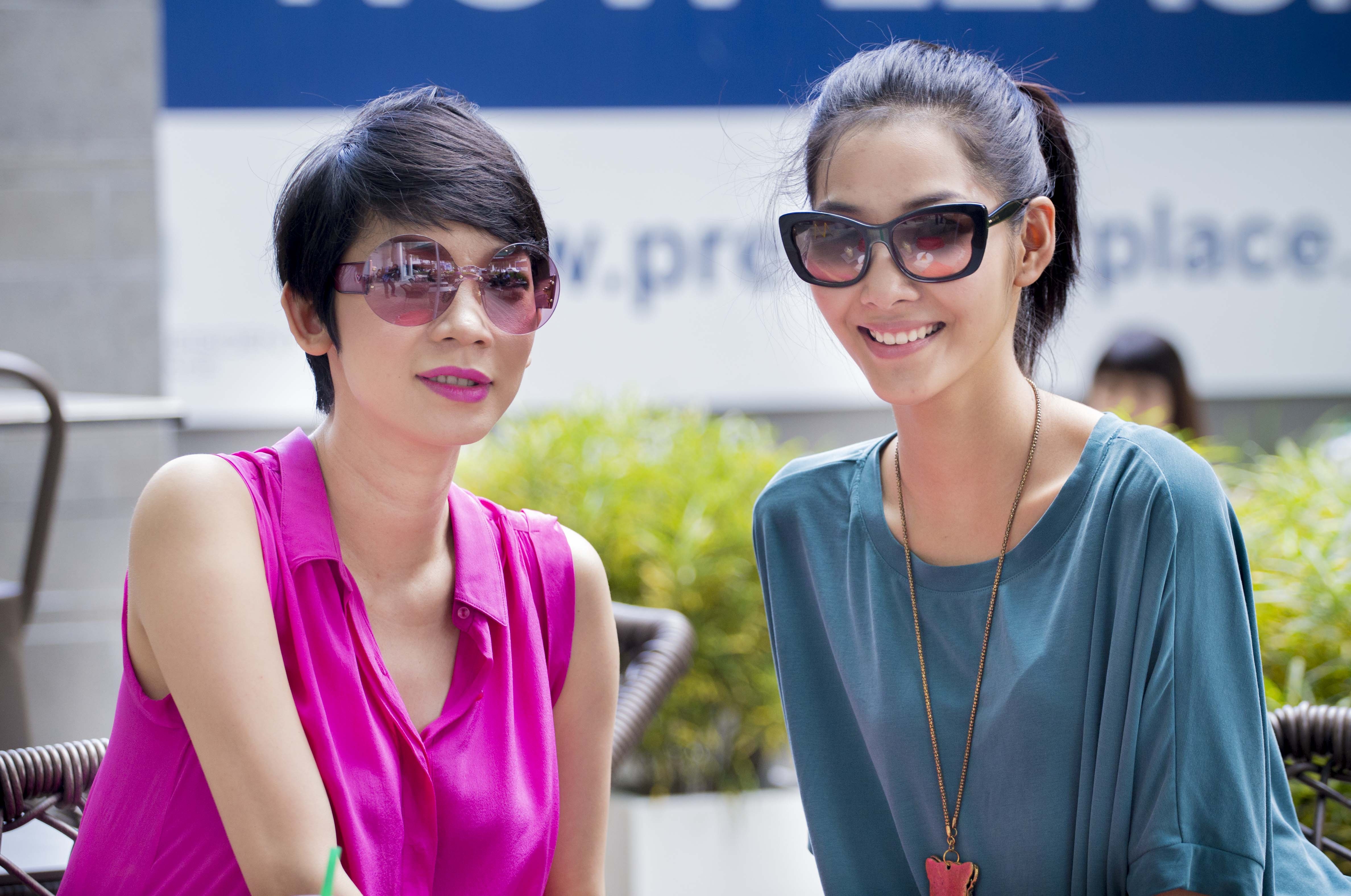 Phát hiện phóng viên đang hướng ống kính về phía mình, cả Xuân Lan và Hoàng Thùy đều tươi tắn tạo dáng để chụp hình.