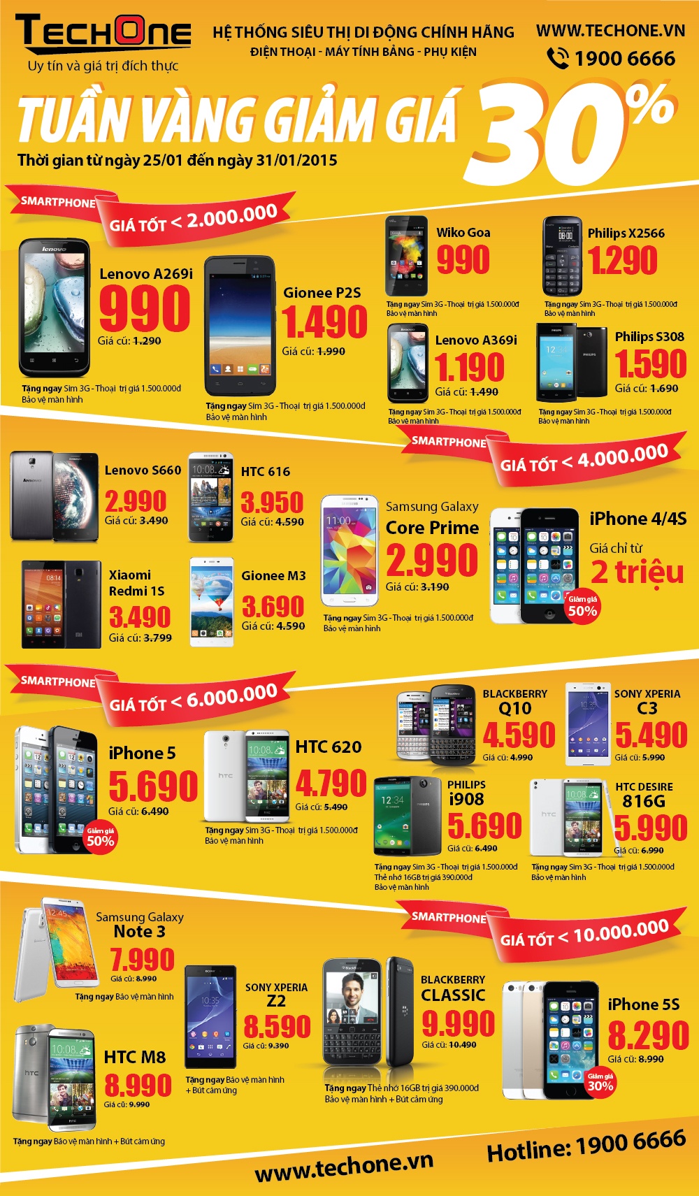 Chào đón xuân mới 2015, TechOne xin gửi tới khách hàng chương trình Xuân rộn ràng - Xả hàng giá shock. TechOne vui mừng mang đến cơ hội sở hữu những sản phẩm mơ ước theo từng phân khúc, với mức giảm giá lên tới 30%