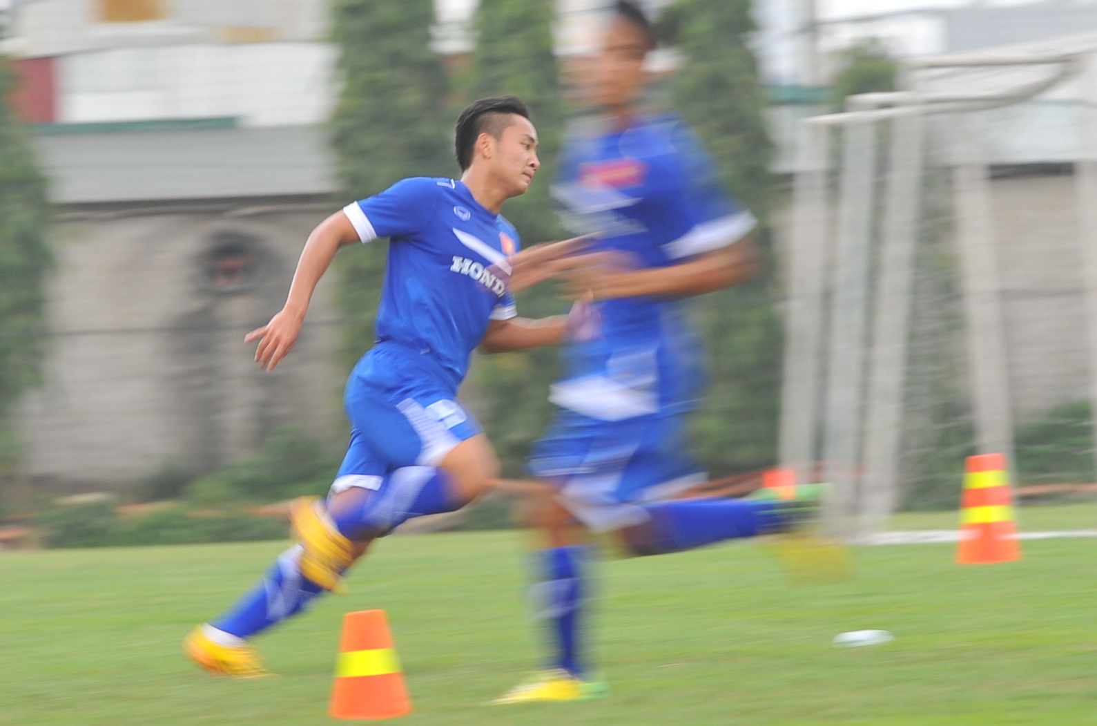 | Trong buổi tập chiều nay, cầu thủ Olympic Việt Nam lại bị nhồi thể lực với các bài tập chạy của HLV Miura. |