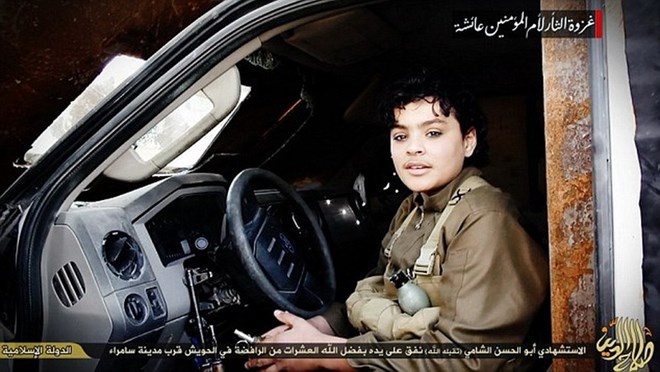 Trong một loạt ảnh mang tên “Trận chiến trả thù cho Mẹ của các tín hữu (Aisha),” có hình cậu bé được cho là một trong số hai chiến binh Syria đã thực hiện vụ đánh bom tự sát ở tỉnh Salahuddin, Iraq.
