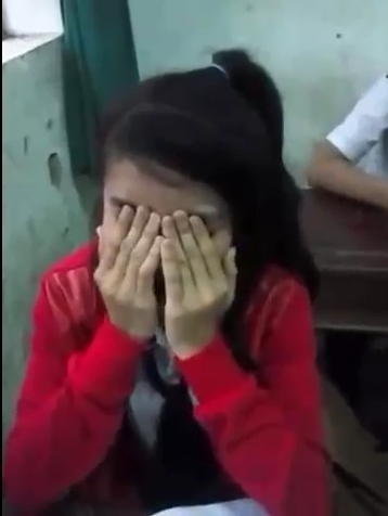 | Hình ảnh học sinh vây quanh, níu thầy ở lại. Ảnh chụp từ clip |