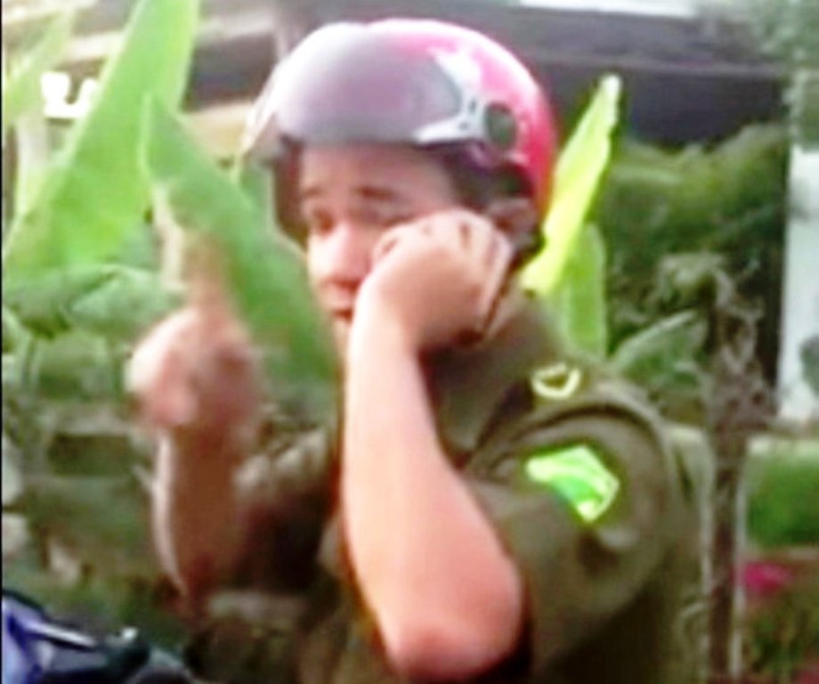 Chưa rõ câu chuyện có kéo dài và clip có bị cắt đoạn hay không, nhưng hình ảnh xuất hiện trên mạng xã hội cho thấy, người mặc đồ công an xã đi một mình. Sau khi bắt xe, công an này đã khước từ mọi câu hỏi của người được cho là vi phạm và một số người dân vây quanh.