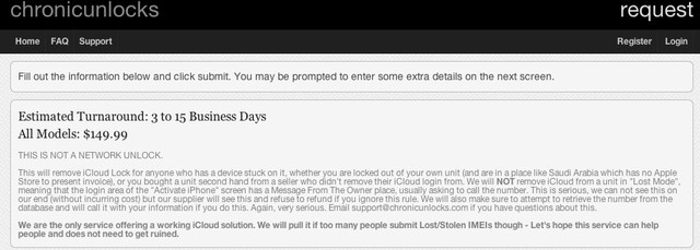 Dịch vụ mới của ChronicUnlocks tuyên bố sẽ không nhận mở khóa cho các thiết bị đang ở chế độ "Lost Mode". Chế độ trên có thể kích hoạt thông qua Find My iPhone hoặc trang web iCloud.com, giúp người dùng bị mất máy gửi cảnh báo khóa thiết bị. Điều này phần nào khẳng định việc công cụ trên hoạt động để giúp đỡ người dùng không may làm mất tài khoản, không tiếp tay cho trộm cắp. Điểm hạn chế của nó là với thiết bị bị mất nhưng người dùng không gửi cảnh báo "Lost Mode", dịch vụ không thể xác định thiết bị có được sở hữu hợp pháp hay không.
