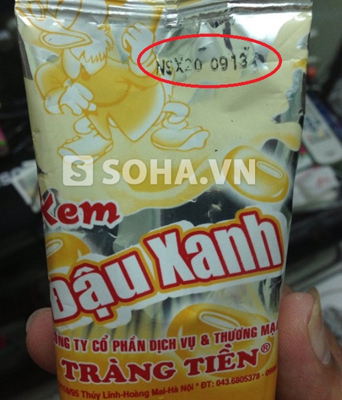 Chị Nguyễn Ngọc Q. (ngụ tại quận Hai Bà Trưng, Hà Nội) kể về sự việc “lạ đời” mà chị chưa từng gặp từ trước tới nay. Vào ngày 13/9/2013, chị Q. mua kem tại đại lý kem Tràng Tiền trên đường Yên Phụ (Hà Nội). Sau khi mua một hộp 10 que kem, chị được tặng thêm 1 que khuyến mại. Tuy nhiên, điều đáng nói là trên bao bì của que kem này lại ghi NSX (ngày sản xuất) là 20/9/2013, “nhảy cóc” 7 ngày so với thời điểm chị mua kem.