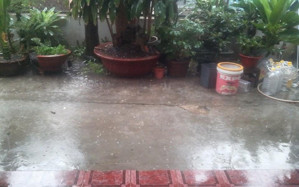 | Mưa đá rơi trắng sân nhà. Ảnh: Minh Tiệp |