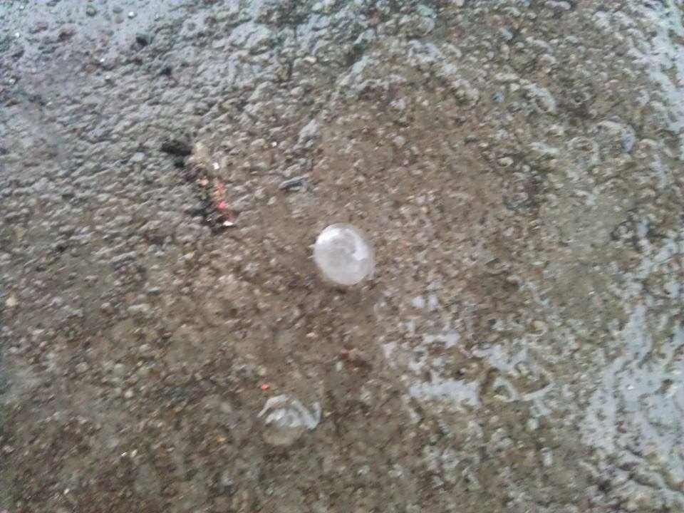 | Hạt mưa đá to bằng quả cà chua bi. Ảnh: Minh Tiệp. |