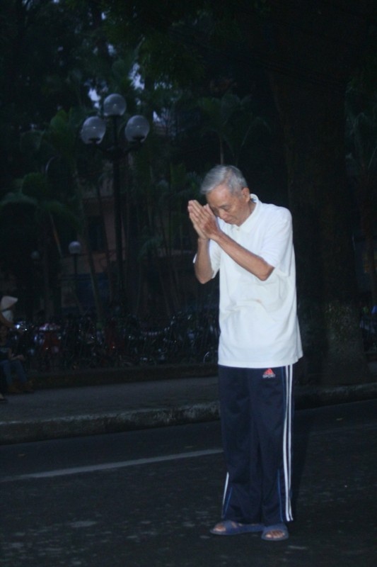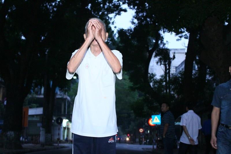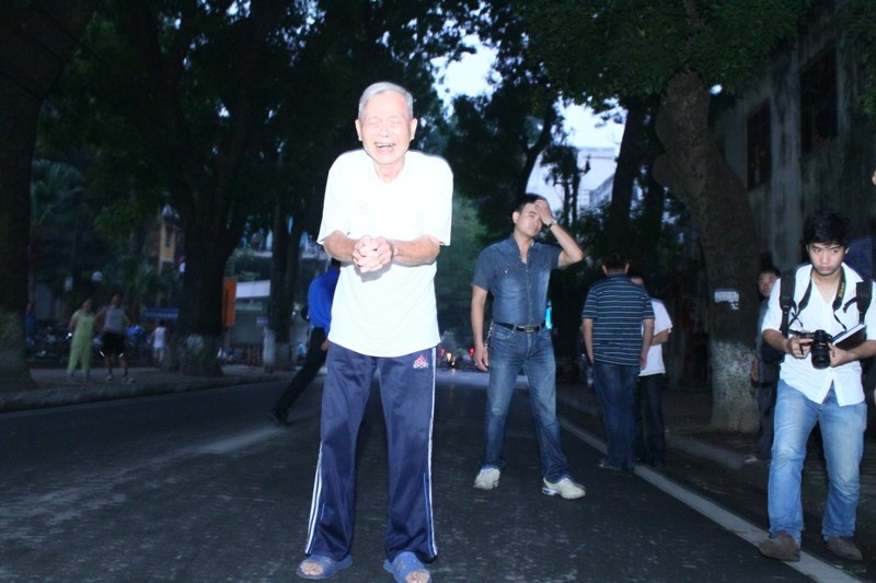 | Từ 4h sáng, ông lão Nguyễn Khắc Phúc 83 tuổi đã đến khu vực nhà tang lễ để bái vọng Đại tướng Võ Nguyên Giáp. |