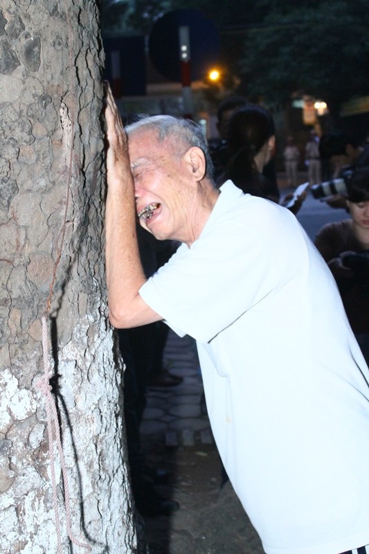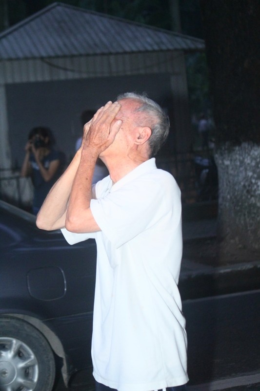 | Ông Phúc khóc phía bên ngoài nhà tang lễ khiến nhiều người không khỏi xúc động. |