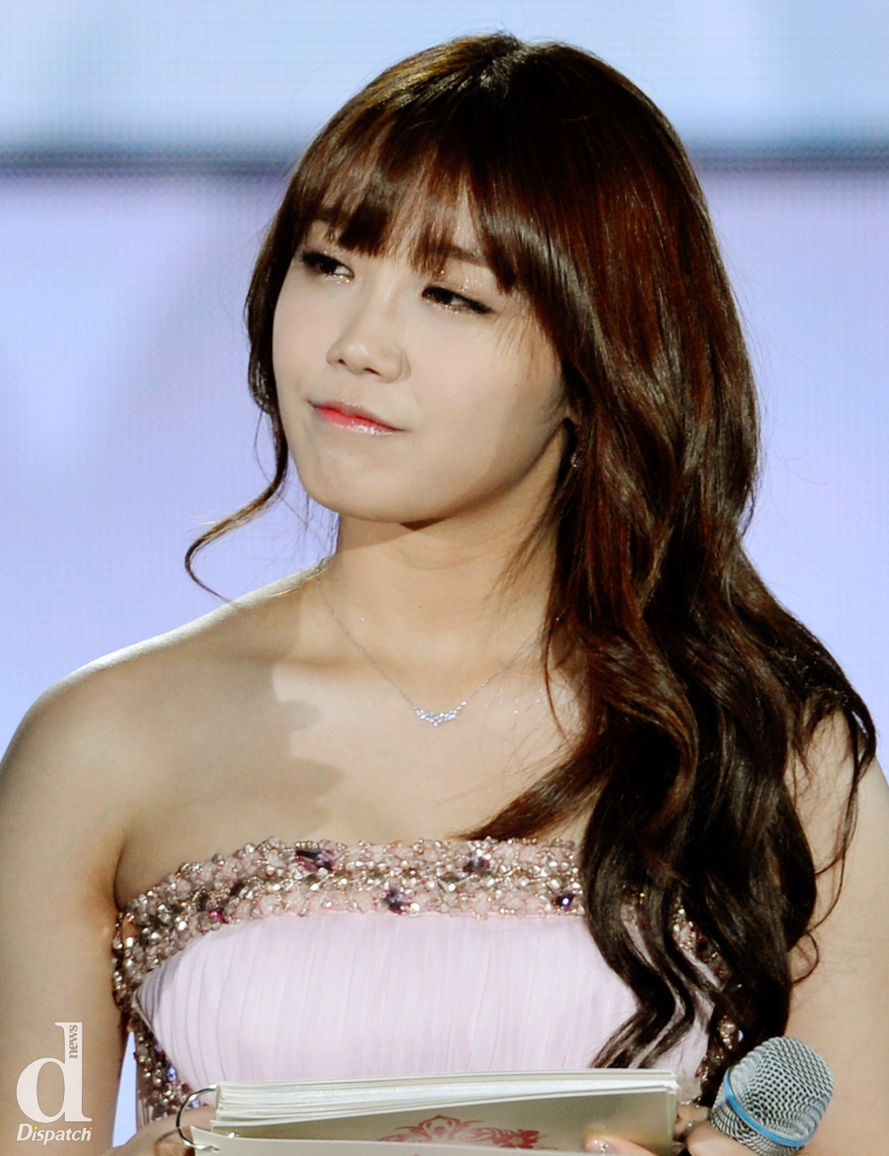 | Kang Min Kyung hoàn hảo từ mái tóc tới trang phục, cô đeo dây cổ làm điểm nhấn cho bờ vai trần và đôi xương quai xanh. |