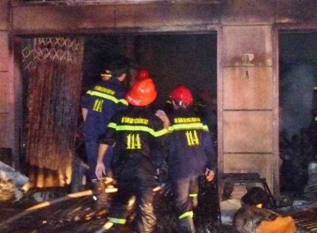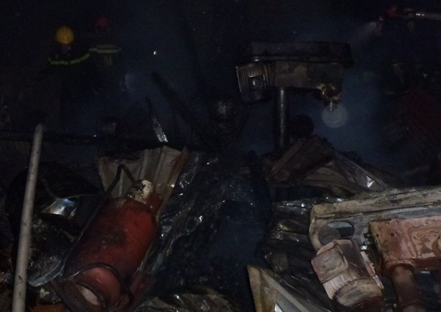 | Trong xưởng có rất nhiều bình gas nhưng rất may không phát nổ. |
