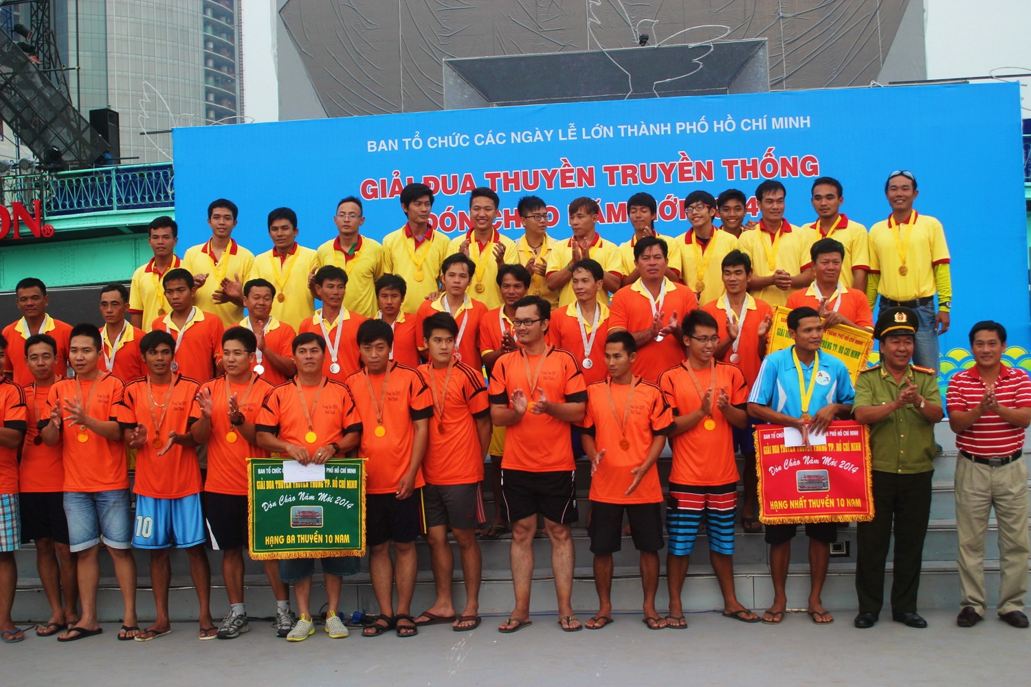 BTC trao giải các giải nhất, nhì, ba cho nội dung thuyền 10 nam. Giải đua thuyền nhằm tăng cường mối quan hệ giữa các sở ban ngành, đoàn thể và lực lượng vũ trang TP.HCM.