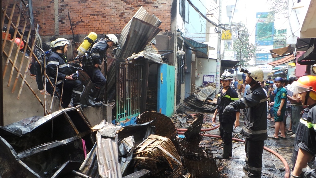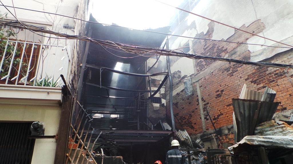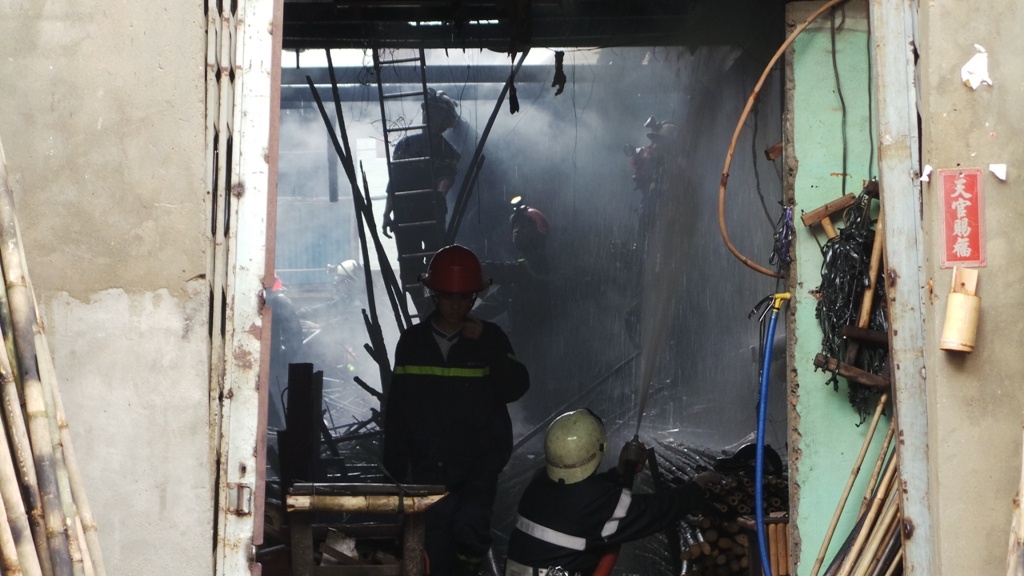 | Vụ hoả hoạn xảy ra trưa 18/1, tại cơ sở sản xuất mây tre của ông Huỳnh Nhi Tô ở đường Trần Quý, phường 6, quận 11, TP.HCM. |