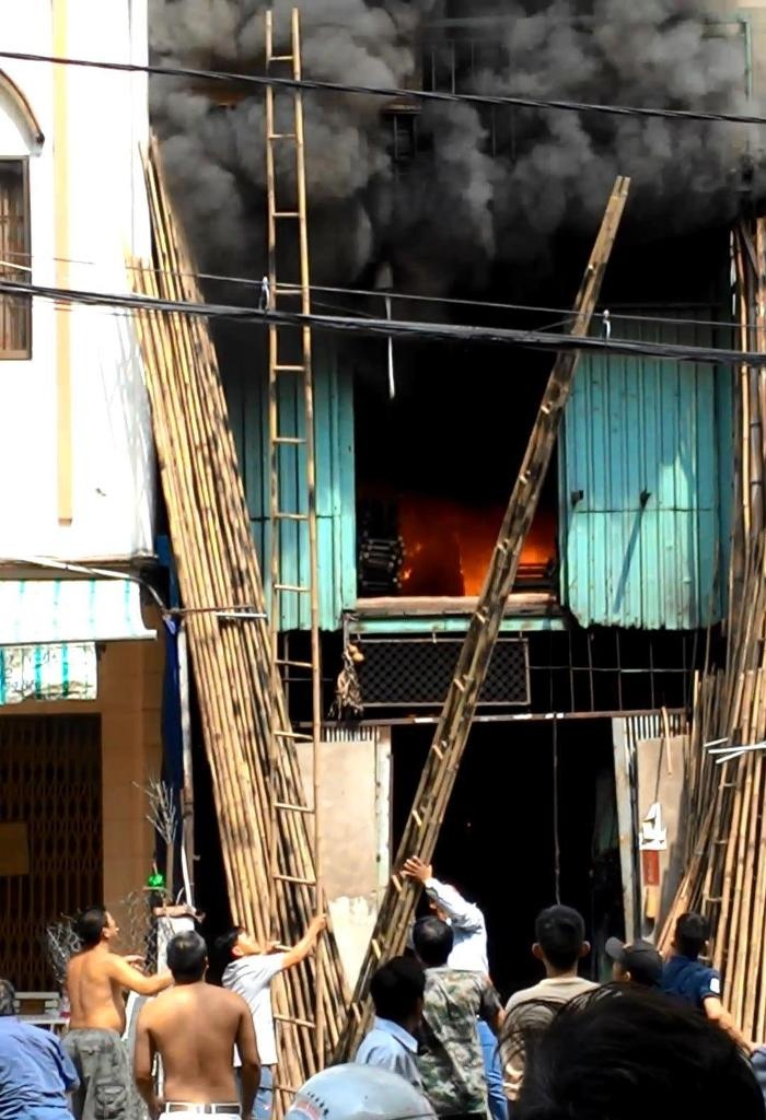 Xưởng mây tre cháy ngùn ngụt ở Sài Gòn