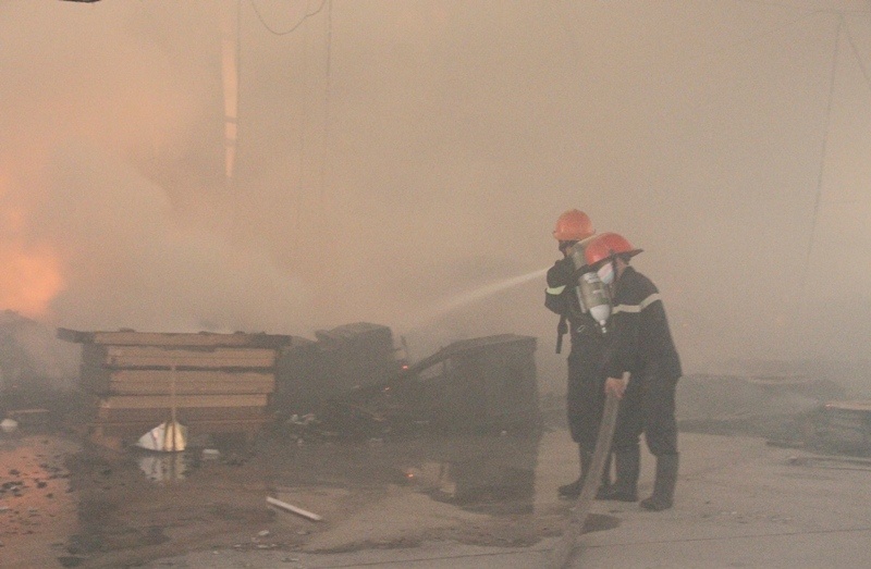 Công nhân cho biết, vào thời gian trên, họ phát hiện khói bốc lên từ góc xưởng, sau đó ngọn lửa lan nhanh, trong đám cháy vang lên nhiều tiếng nổ.