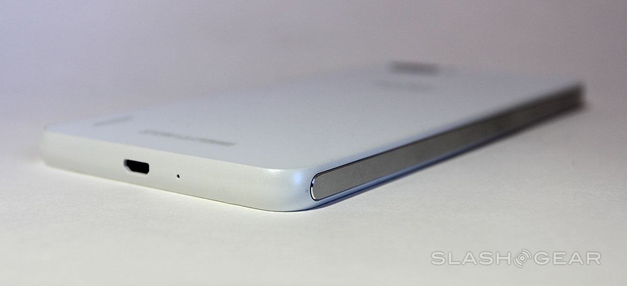 | Hệ thống phím vật lý, khe microSIM cũng như khe cắm thẻ microSD được thiết kế giống hệt iPhone. Ảnh: Slash Gear |