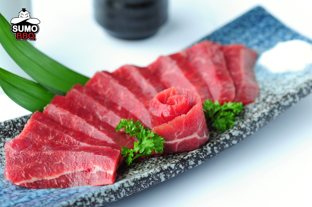 Quan trọng hơn cả, khi đến với Sumo BBQ, bạn sẽ được trải nghiệm với hơn 23 loại thịt bò/heo tươi thượng hạng được nhập khẩu từ Úc/Mỹ, và 22 loại hải sản tươi ngon cùng nhiều loại xiên nướng, rau củ được tẩm ướp với những loại sốt làm từ nguyên liệu tự nhiên, đặc biệt được chế biến bởi bếp trưởng Noda Toshiro với hơn 30 năm kinh nghiệm trong ngành ẩm thực Nhật.