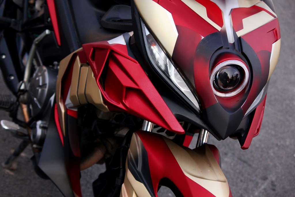 Chiếc Exciter được độ lại kiểu dáng phong cách người sắt Iron Man với điểm nhấn ở phần đầu xe và đường nét góc cạnh ở thân xe.
