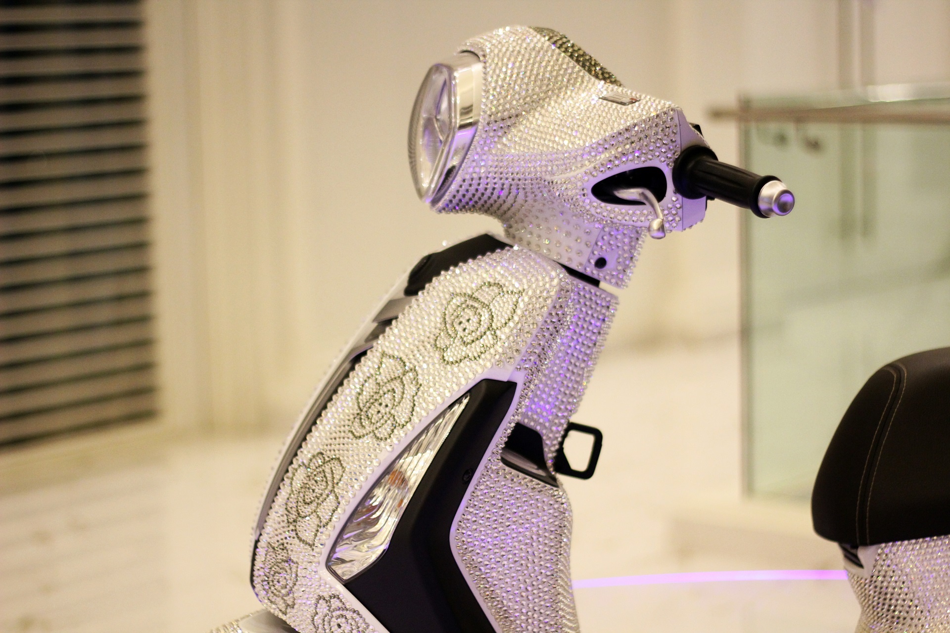 | Sự kết hợp của chiếc xe tay ga cao cấp và những viên pha lê Swarovski đã tạo nên một tác phẩm nghệ thuật thực sự. Nó như một món đồ trang sức hơn là một chiếc xe. |
