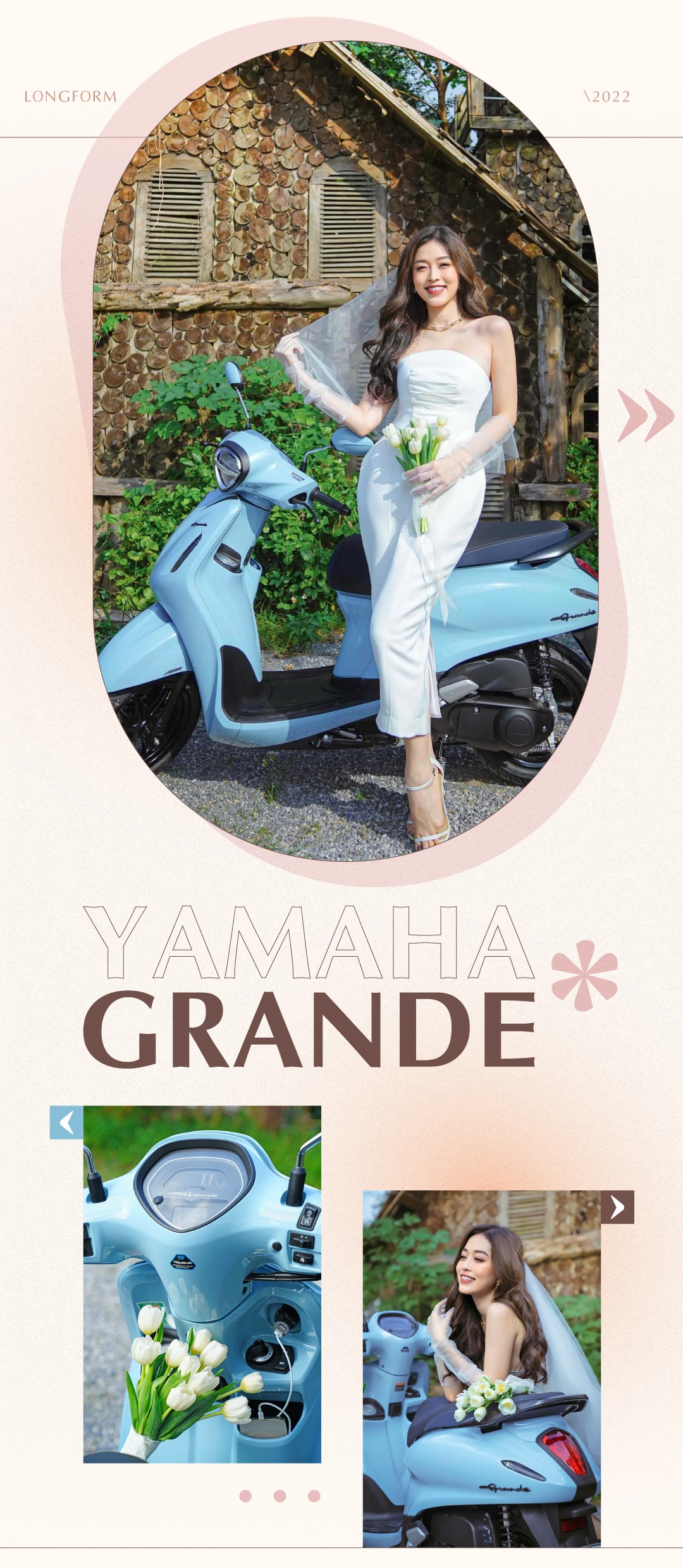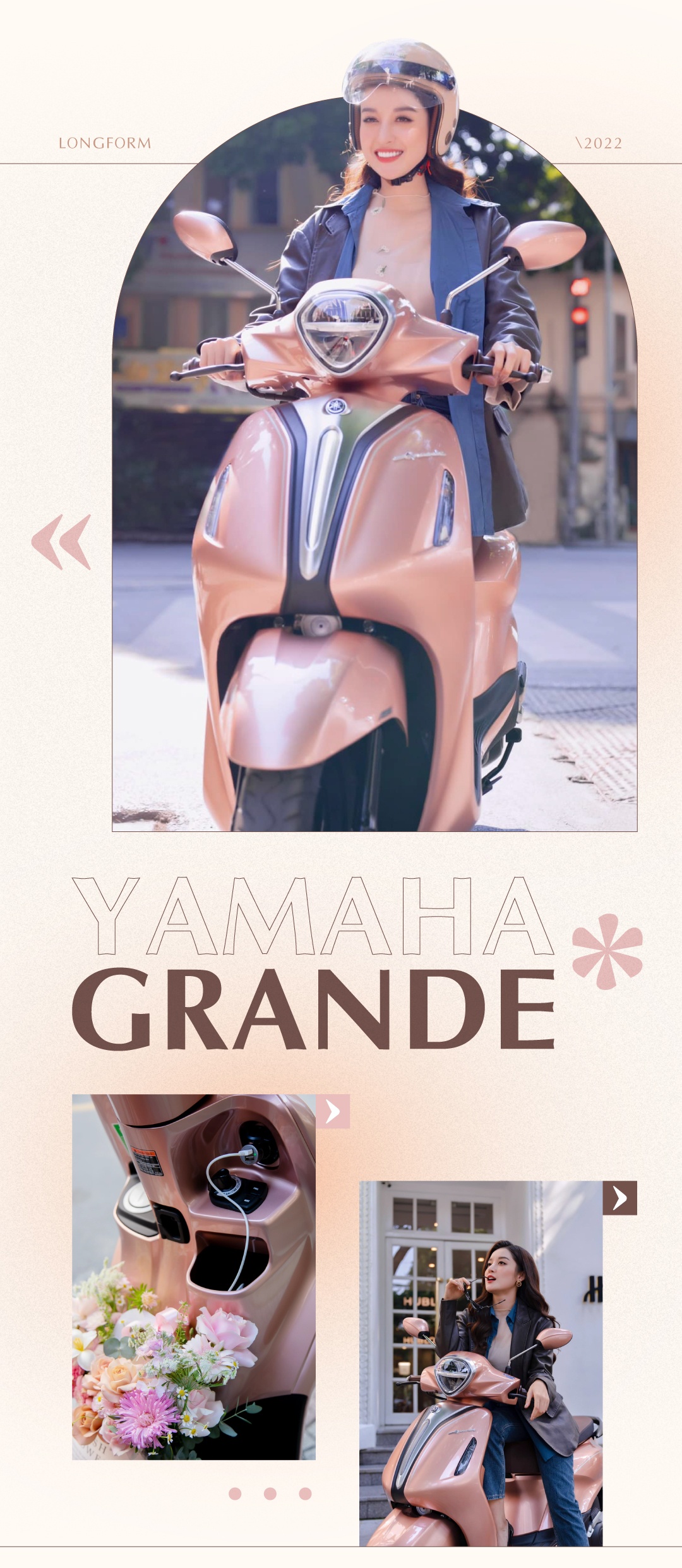 Ra mắt năm 2014, Yamaha Grande nhanh chóng được định hình “sinh ra để dành cho phái đẹp” bởi ngoại hình mềm mại và thanh lịch, chẳng khác nào món phụ kiện bắt mắt giúp hoàn thiện phong cách thời trang, tôn vinh cá tính lẫn gu thẩm mỹ của chủ nhân. Cũng bởi lý do này mà ngay từ thời điểm mua “xế cưng”, nhiều bạn gái đã lựa chọn màu xe phù hợp với cá tính thời trang của bản thân, có thể là sắc trắng tinh tế, bạc bí ẩn hay hồng lãng mạn, xanh thanh lịch.