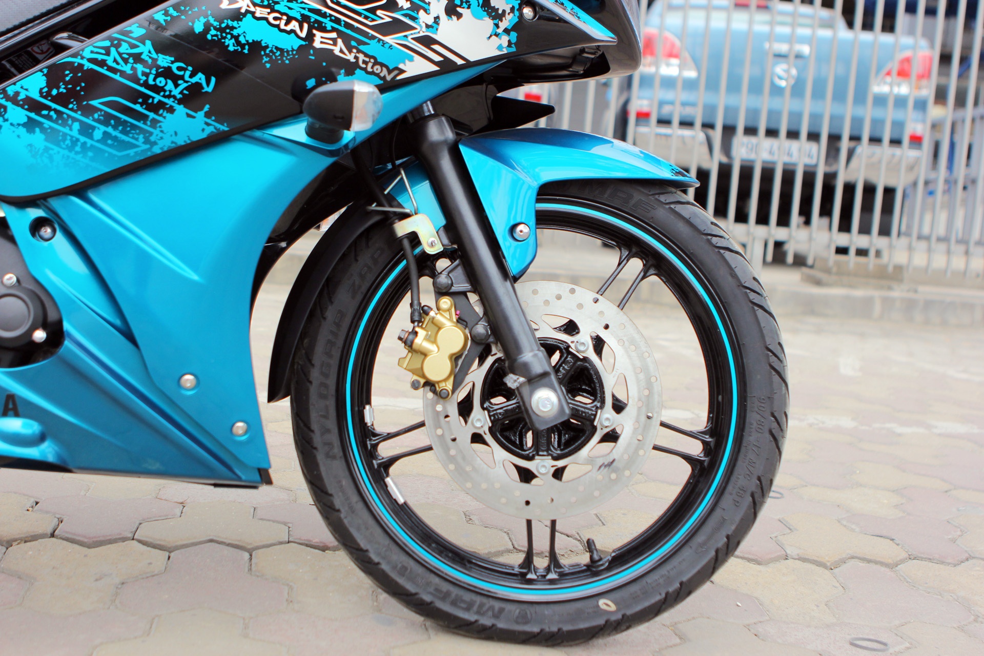 | Vành xe 5 chấu, kèm theo đường viền giống màu thân xe tạo thêm sự đồng bộ và thể thao cho mẫu sportbike 150 phân khối của Yamaha. Trang bị an toàn phía trước là hệ thống phanh đĩa đơn. |
