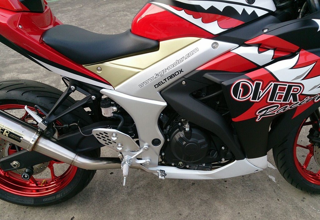 Ở R25, Yamaha không sử dụng bộ khung Deltabox như "người anh em" R15, do đó chủ xe đã sơn riêng một mảng màu trên dàn vỏ theo phong cách bộ khung sườn này.