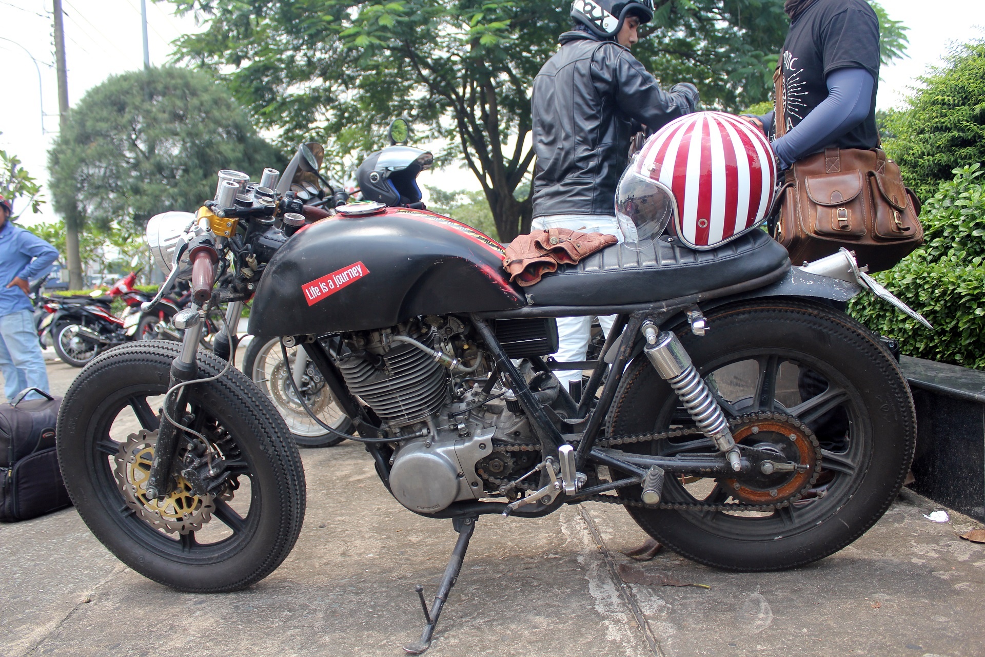 Một chiếc SR 500 được độ lại theo phong cách cafe racer của một biker ở Sài Gòn gây ấn tượng mạnh với người đi đường bởi ngoại hình bụi bặm và âm thanh từ ống pô.
