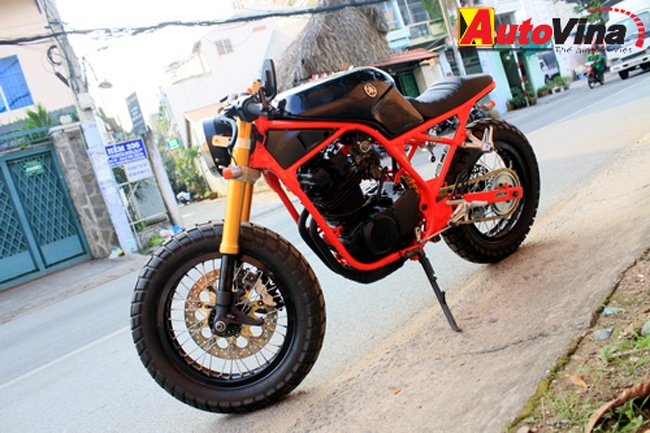Chiếc Yamaha SRX 250 trong bài viết này đã được thay đổi hoàn toàn, chỉ có phần khung sườn phía trước (khu vực chứa thùng xăng) là giữ nguyên.