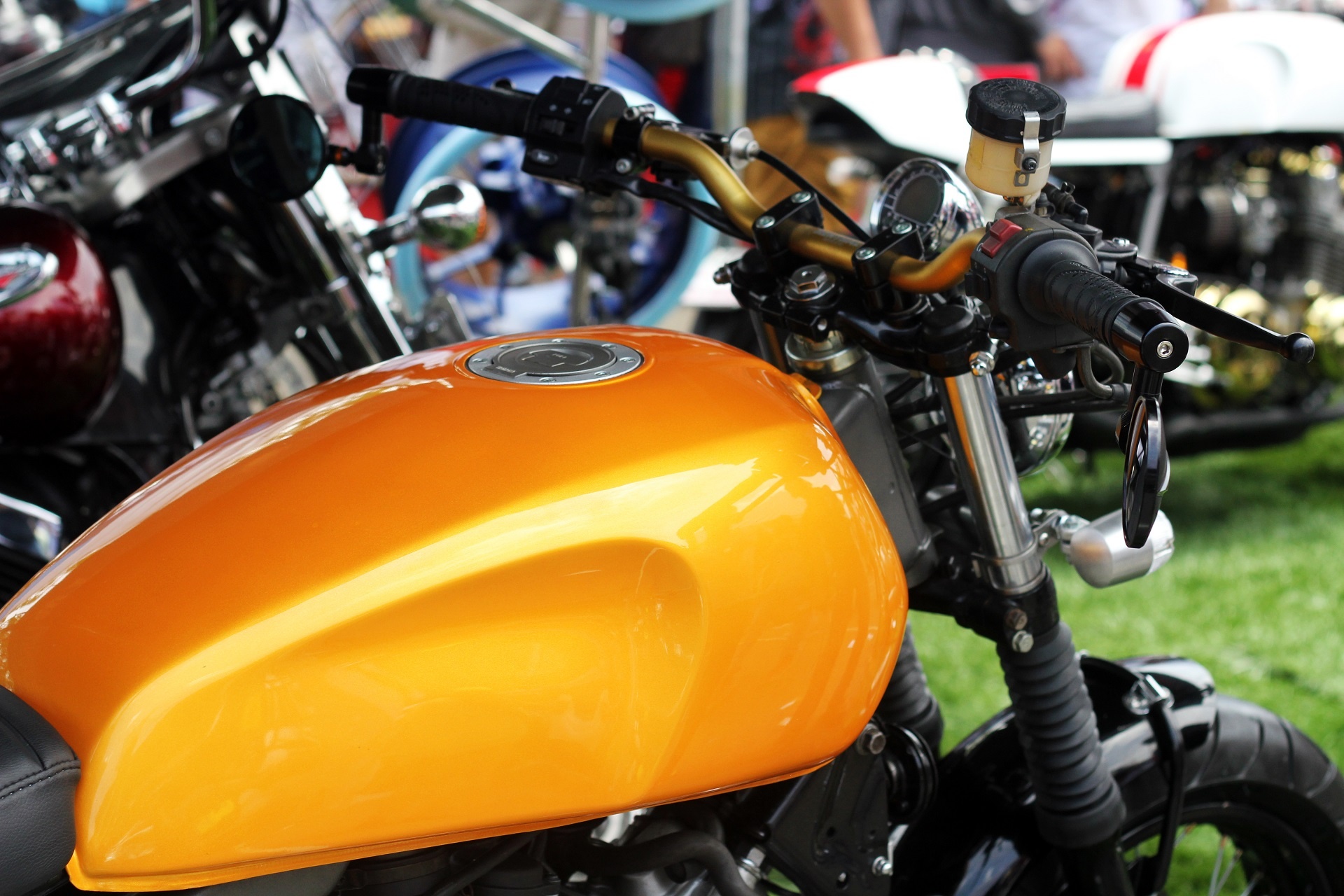 | Bình xăng dung tích lớn được những người thợ tay nghề cao sơn lại. Cặp gương nằm phía dưới tay lái thường thấy trên những chiếc cafe racer. |