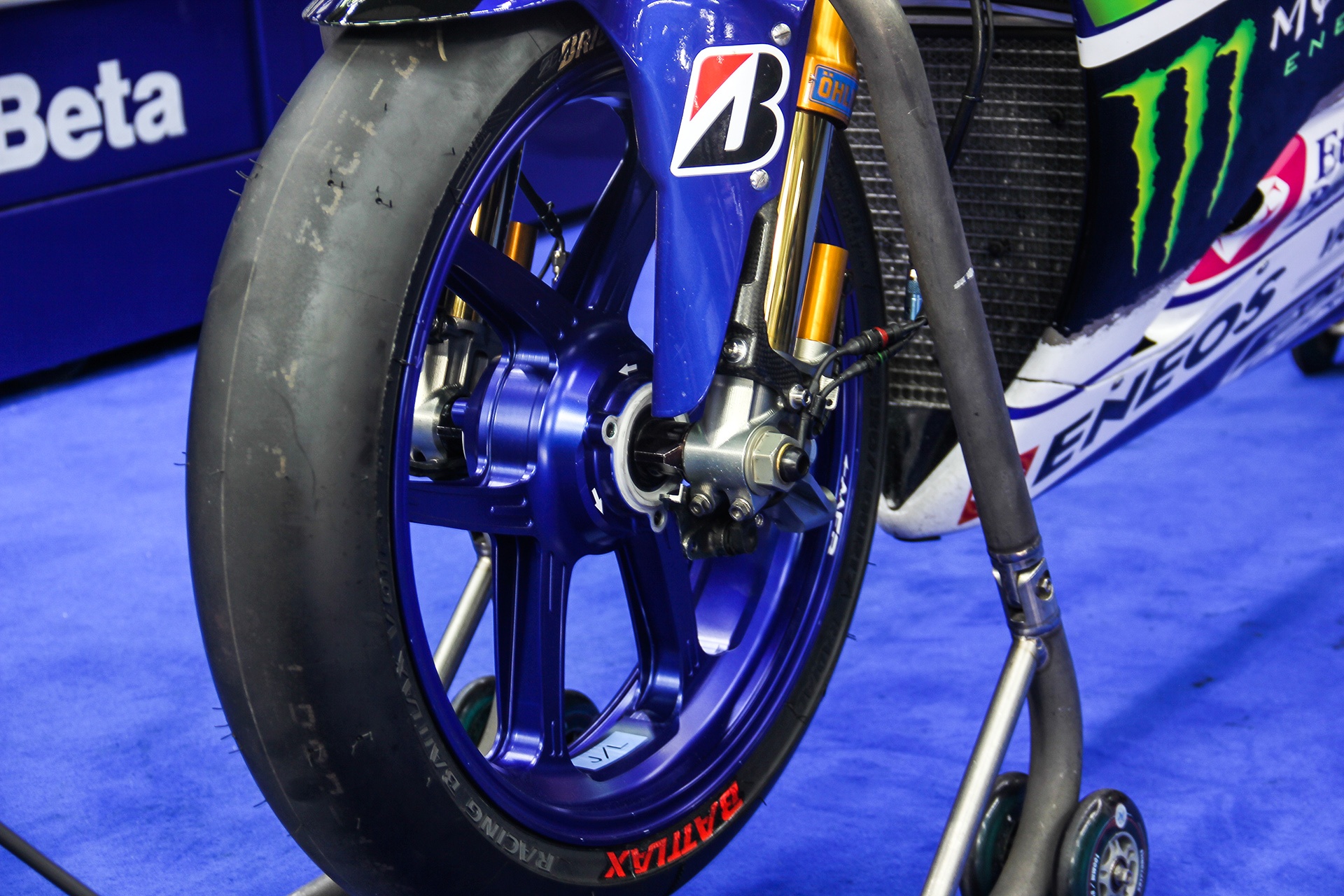 | Trước mỗi chặng, siêu môtô của các tay đua đều được chăm sóc, kiểm tra kỹ lưỡng bởi đội ngũ kỹ thuật viên cao cấp. Lốp xe thường được chăm sóc kỹ, do đây là một trong những bộ phận chịu đựng điều kiện vận hành khắc nghiệt nhất. Thông thường lốp xe được gia nhiệt (làm nóng) trước khi đua. YZR-M1 sử dụng lốp kích thước 16,5 inch cả phía trước và sau. Vành xe được làm từ hợp kim magie MRC. Trọng lượng của M1 là 158 kg. |