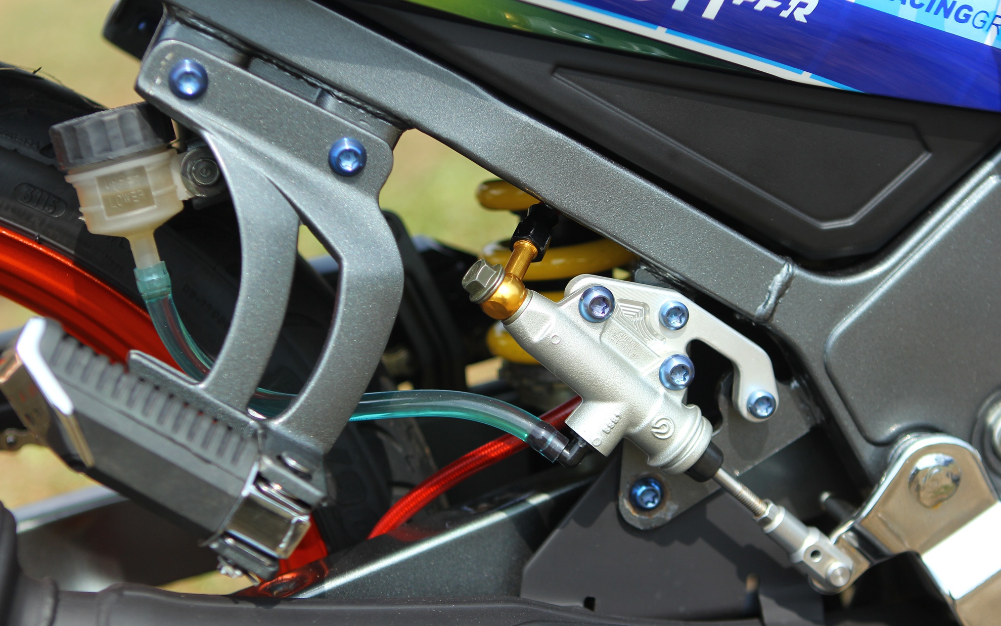 | Đĩa Galfer, heo Brembo, cần đạp Brembo, bình dầu Rizoma và toàn bộ dàn ốc Titanium. |