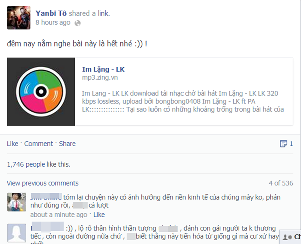 | Những dòng comment của cư dân mạng dành cho Yanbi. |