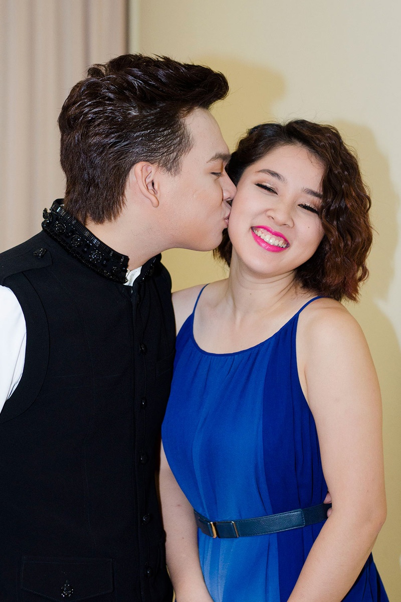 | Bảo Trâm Idol cười rất tươi khi được Nguyễn Trần Trung Quân hôn lên má trong cánh gà. Cặp đôi cũng có màn song ca ca khúc Gọi anh tại Bài hát yêu thích tháng này. |
