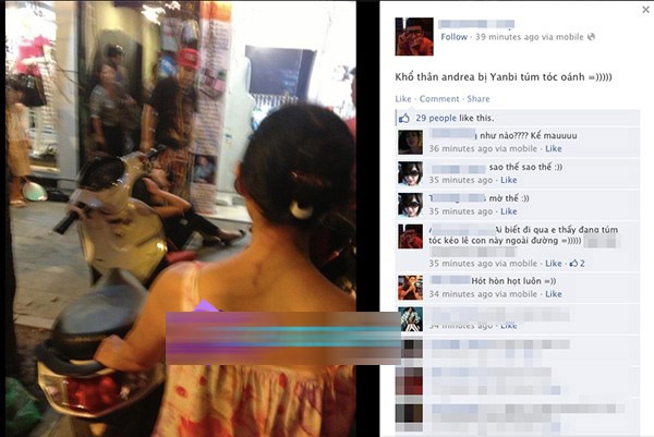 | Hình ảnh được cho là Yanbi đánh Andrea trên phố Hàng Trống. |
