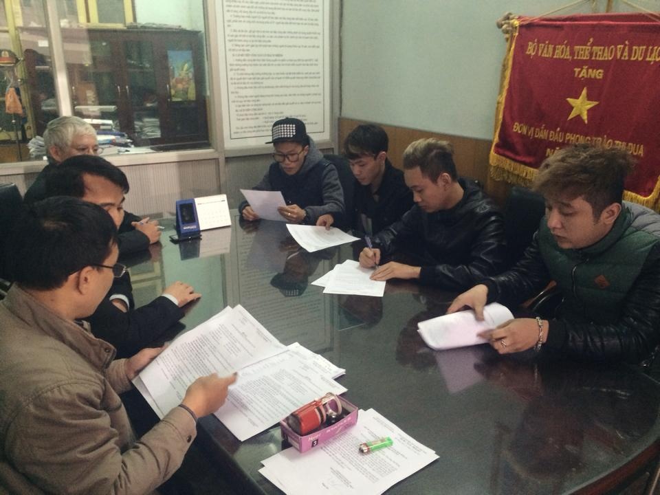 | Yanbi và Mr. T cùng đại diện của BTC đêm nhạc làm việc với Sở Văn hóa Thể thao và Du lịch Hải Phòng. |