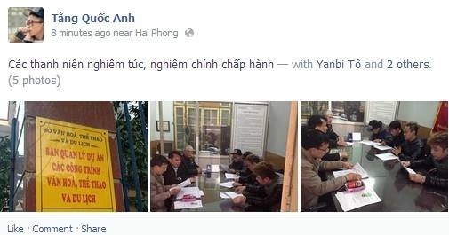 | Mr. T chia sẻ hình ảnh mình và Yanbi tới làm việc cùng Sở VH Hải Phòng trên trang cá nhân. |