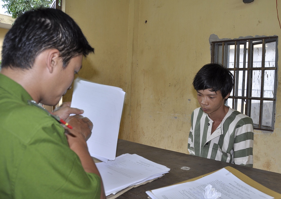 | Lê Ngọc Thới tại cơ quan điều tra. Ảnh: Ngọc An. |