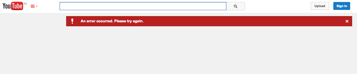 Trang BGR cho biết, ngoài thông báo "500 Internal Server Error", một số người dùng vẫn vào được giao diện của YouTube trong thời điểm xảy ra sự cố, nhưng không thể xem được các nội dung trên trang. Trang chính của YouTube xuất hiện dòng chữ "An Error occurred. Please try again".
