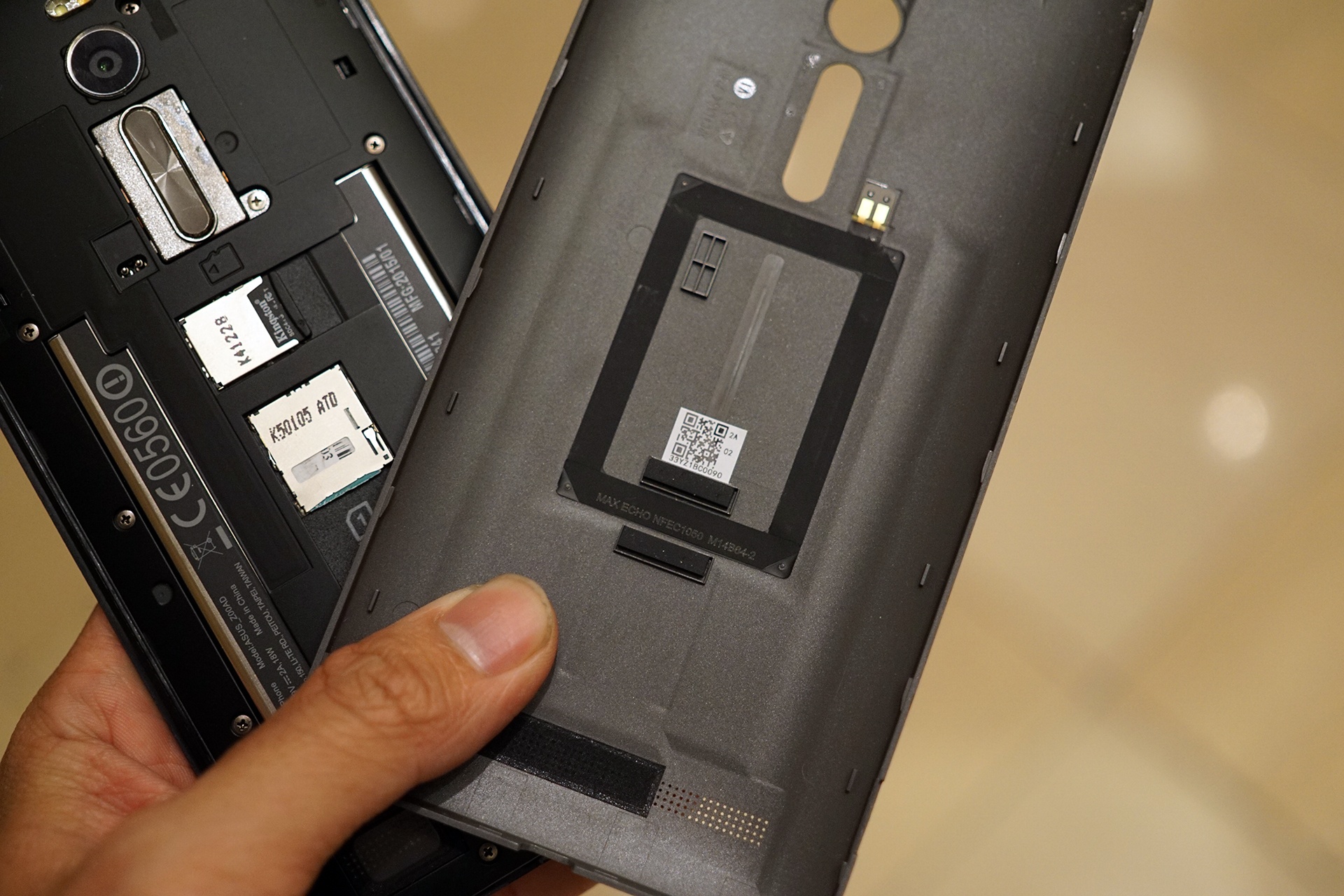 | Trên nắp của máy có những chi tiết của bộ phát tín hiệu trường gần (NFC). Tại Việt Nam, Zenfone 2 chưa có giá bán dự kiến, trong khi đó, Đài Loan đã bán model này với giá khoảng từ 4 đến 6 triệu. Trước đó, trang thương mại điện tử AliExpress thuộc tập đoàn Alibaba (Trung Quốc) cho đặt máy với giá từ 6 đến 8,8 triệu đồng, khá gần với phân khúc cao cấp. |