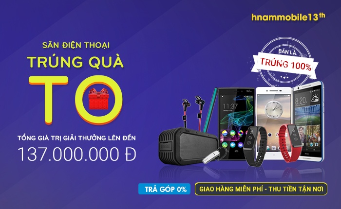 Chương trình Săn điện thoại -Trúng quà to có tổng giá trị giải thưởng lên đến 137 triệu đồng. Tất cả khách mua hàng trên 1 triệu đồng đều được tham gia game bắn quà và 100% được tặng ngay các phần quà cao cấp như điện thoại Oppo R1K, HTC 820q, Wiko Ridge Fab, đồng hồ thông minh, loa nghe nhạc, tai nghe, pin dự phòng…