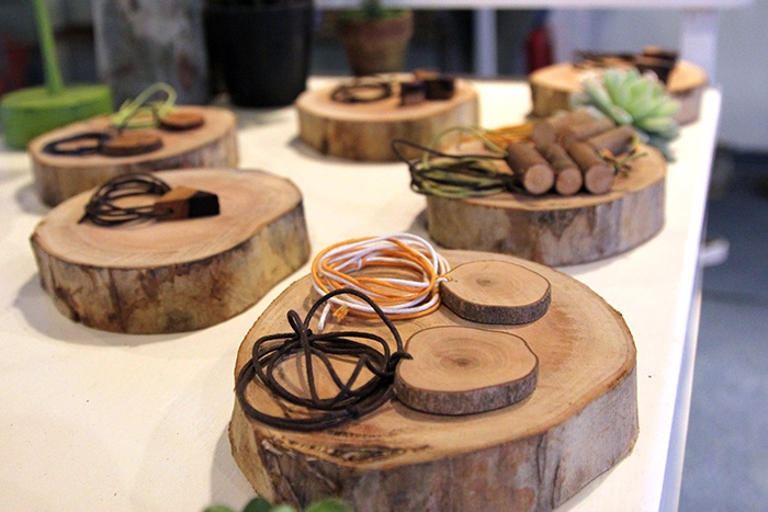 | Chị Đào, chủ shop phụ kiện thời trang độc đáo này tiết lộ, tất cả những sản phẩm trang sức thời trang này đều làm bằng gỗ thừa từ xưởng đóng bàn ghế, nội thất. Điều độc đáo là các sản phẩm này được làm hoàn toàn thủ công, có trọng lượng khá nhẹ và giá thành rẻ. |