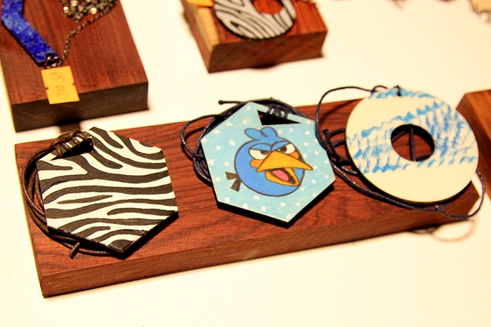 | Độc đáo nhất là những shop bán đồ trang sức bằng gỗ rất "xì tin", từ bông tai, vòng tay đủ mọi kiểu dáng và màu sắc. Những sản phẩm này chỉ có giá từ 50.000 - 200.000 đồng. |