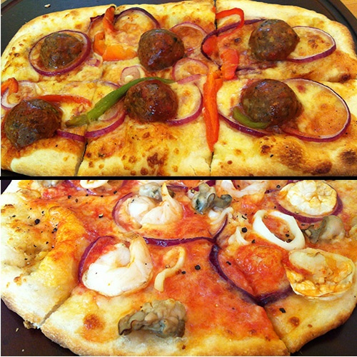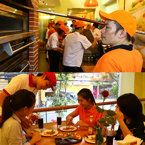 Những chiếc pizza miễn phí đầu tiên được chuẩn bị và đặt lên bàn để chiều lòng những vị khách khó tính nhất: pizza hải sản với sốt cà chua phủ phomat Mozzarella nhập khẩu, cùng các nguyên liệu hải sản tươi 100% như mực, ngao, tôm... hay chiếc pizza hình chữ nhật duy nhất chỉ có tại cửa hàng, với từng viên thịt bò tròn trịa, vàng thơm phủ dưới là lớp phomai béo ngậy và đế bánh giòn rụm, tô salad gà sốt BBQ với ngô non và xà lách tươi lành, ngọt mát…